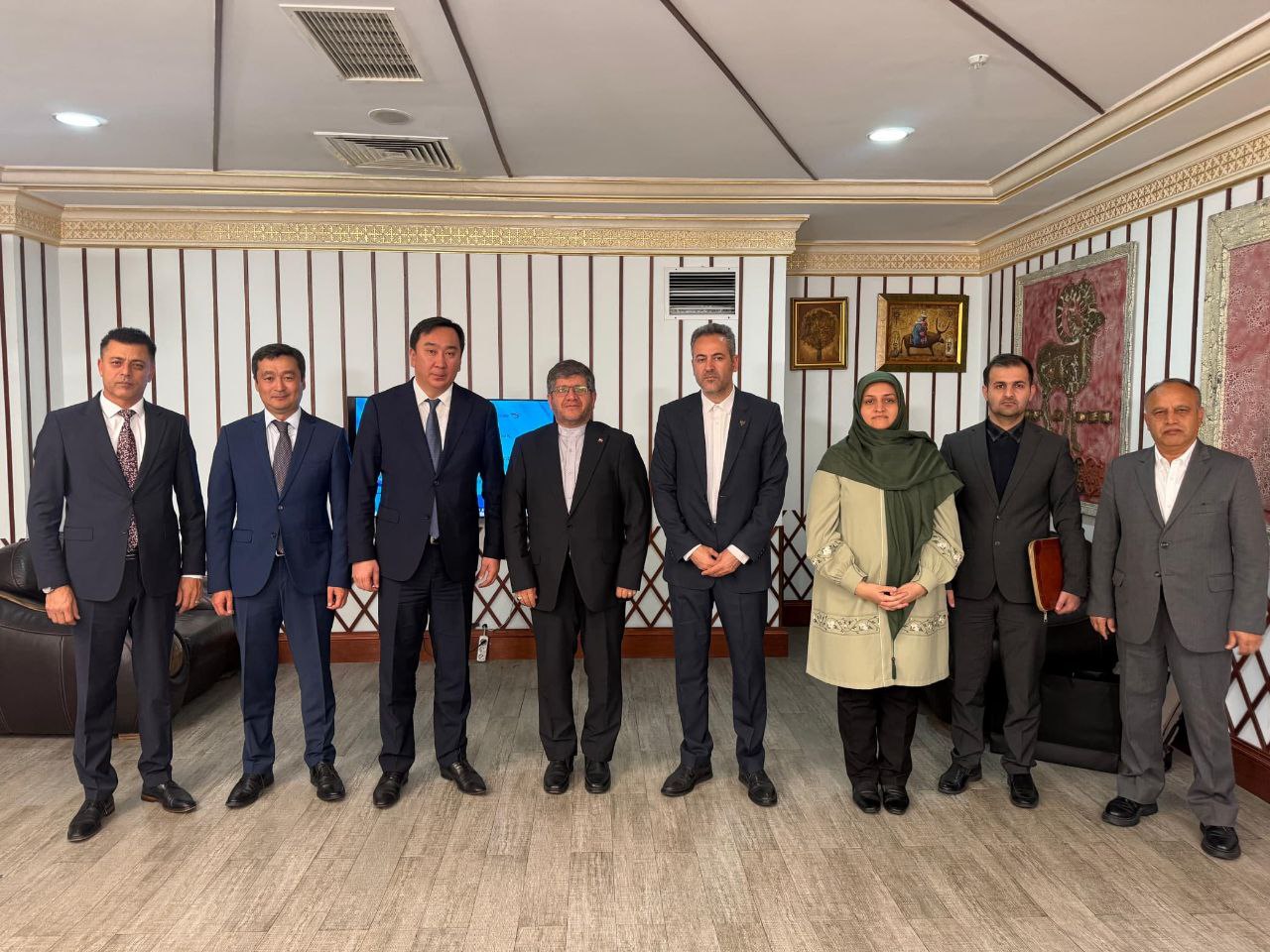 جناب آقای جبارعلی ذاکری معاون محترم وزیر راه و شهرسازی و مدیرعامل راه آهن جمهوری اسلامی ایران با همراهی سرکار خانم سونا احمدی سرکنسول محترم جمهوری اسلامی ایران در آلماتی مورخ ۹ مهرماه ۱۴۰۴ با آقای مقصد کالیکبروف معاون وزیر حمل و نقل جمهوری قزاقستان دیدار و گفتگو کردند؛